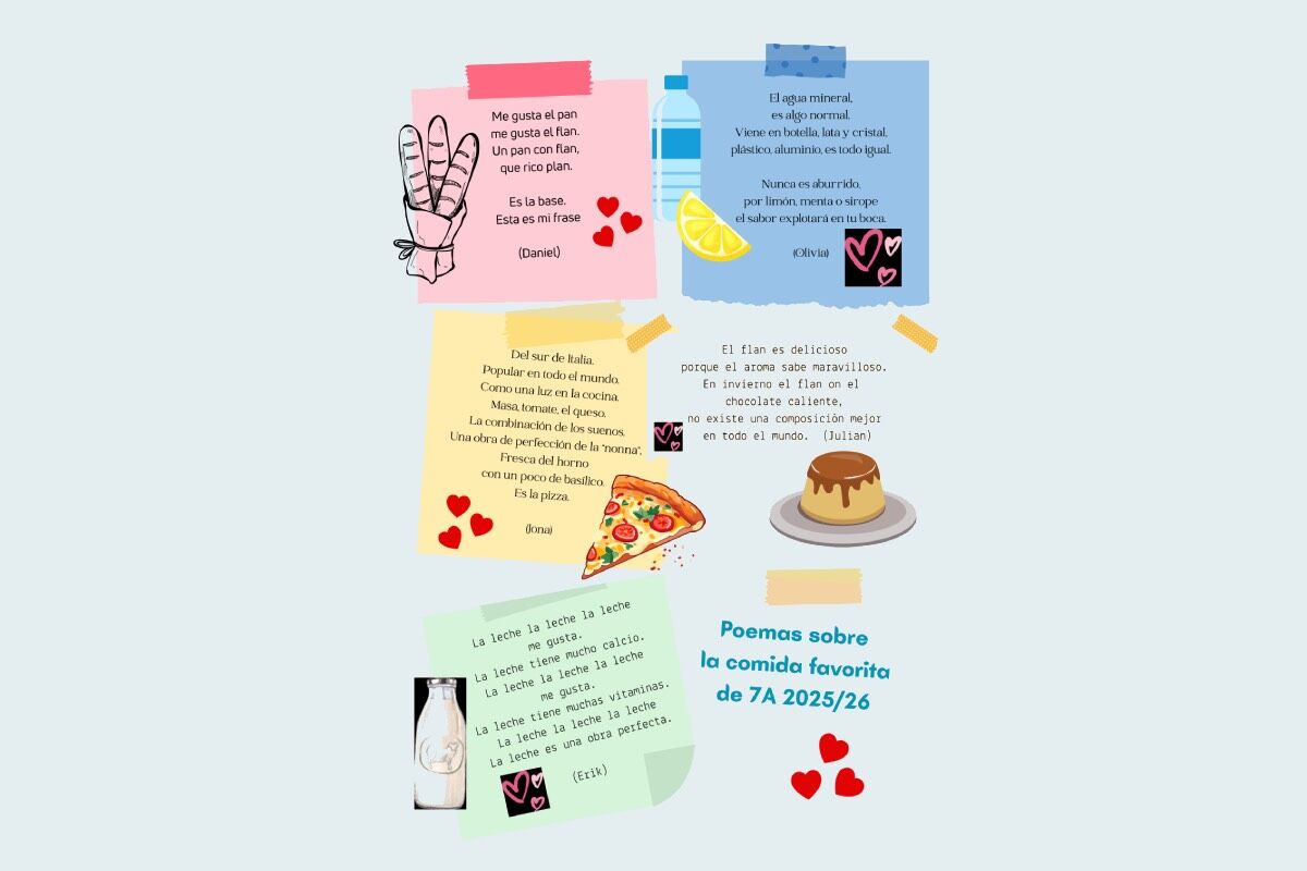 Ganz nach Pablo Neruda, dem berühmten chilenischen Dichter, hat sich auch die Spanischgruppe der 7A an die schriftliche Version ihres Lieblingsessens gewagt.