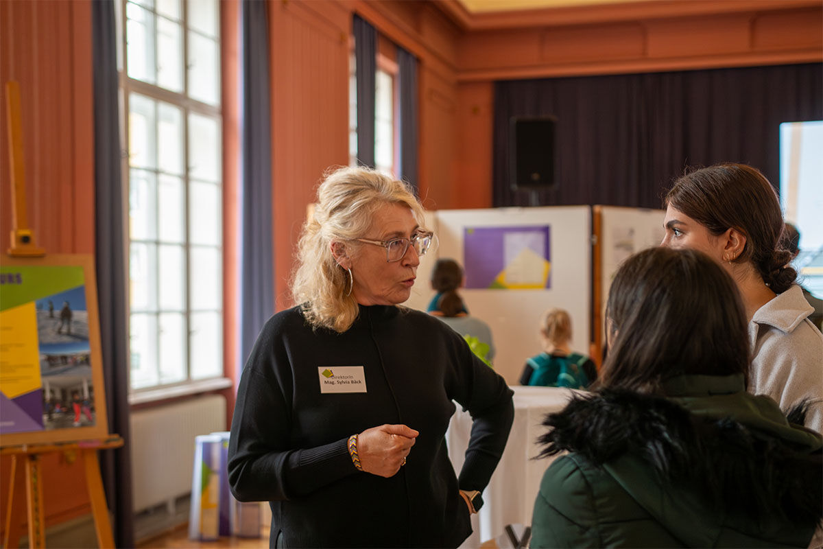 Im Festsaal begrüßte Direktorin Mag. Sylvia Bäck die Gäste, informierte über das Schulprofil und beantwortete viele Fragen persönlich. Während überall entdeckt, ausprobiert und gestaunt wurde, sorgten unsere 8. Klassen mit einem köstlichen Buffet für das leibliche Wohl und beste Stimmung.