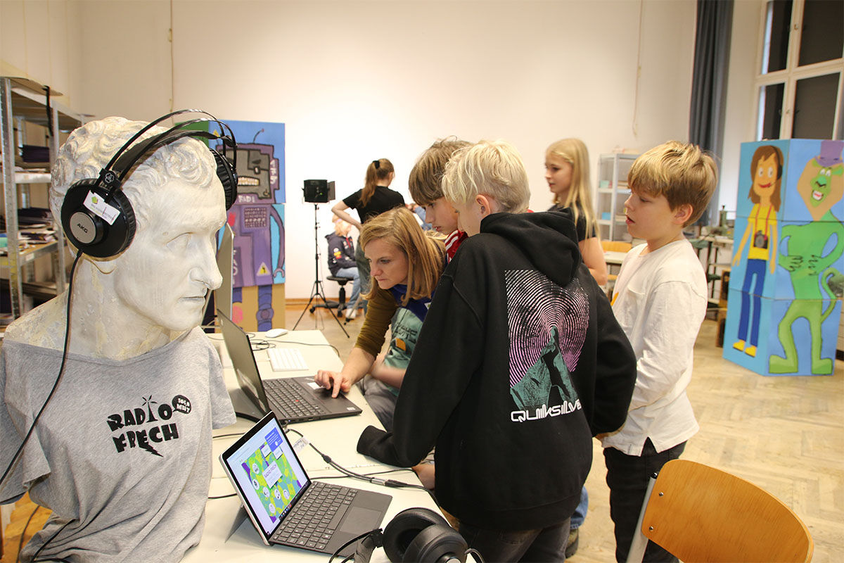 Im Bereich Medien wurden die vielfach preisgekrönten Film-Produktionen bestaunt, die Methoden des Radiosenders Frech ausprobiert und eifrig fotografiert.