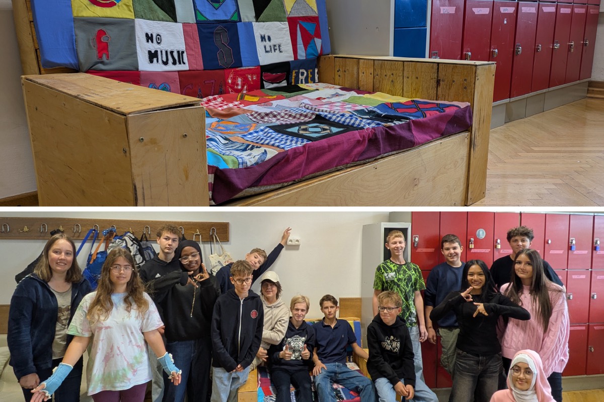 Gut macht es sich das neue Sofa im Raum der 4C – es steht an der hinteren Wand neben den Spinden und es passen mehr als zwei stolze SchülerInnen darauf. Entstanden ist es bereits am Ende der dritten Klasse im Unterricht für Technik und Design, allerdings wurde das Sofa erst am Anfang dieses Schuljahres fertiggestellt.